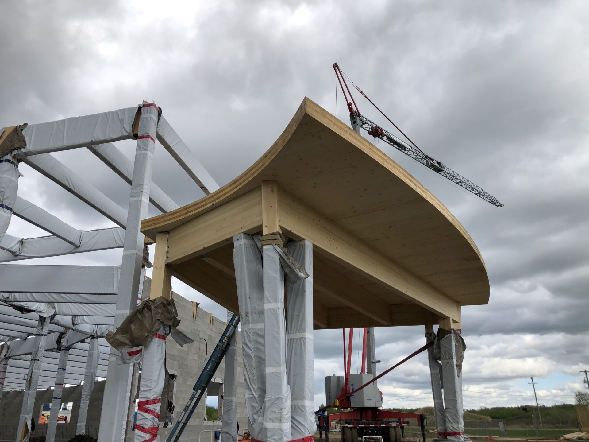 Mercer Mass Timber manufactured and supplied 5-ply mass timber structural components and associated hardware for the school’s front entrance canopy. The canopy comprises 5 panels, and the edges had to be cut precisely to ensure the appearance of a continuous curve.