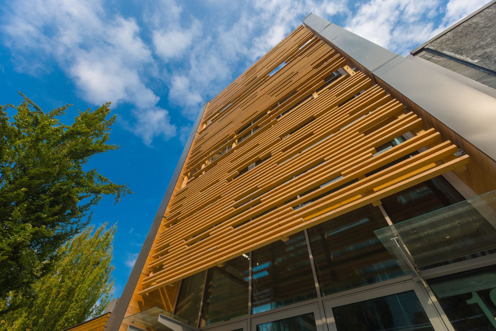 5-ply and 7-ply cross-laminated timber (CLT) wall, floor, and roof panels serve as the building’s primary structural system, complemented by a concrete and masonry base. Manufactured at Mercer Mass Timber’s factory, a total of 32 master panels equating to roughly 15,360-square-feet arrived by trucks from Washington state. The use of advanced logistical software allowed for just-in-time delivery, making for precise installation on this tight urban site.